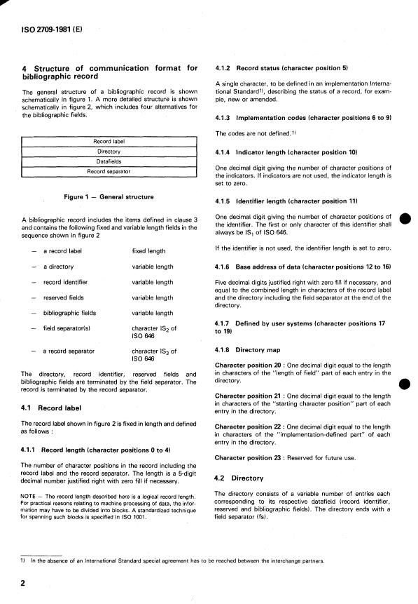 ISO 2709:1981 is a standard published by the International Organization for Standardization (ISO). Its full title is "Documentation — Format for bibliographic information interchange on magnetic tape". This standard covers: Documentation — Format for bibliographic information interchange on magnetic tape