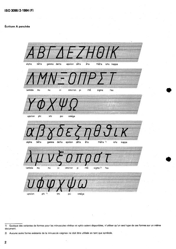 Dessins techniques — Écriture — Partie 2: Caractères grecs