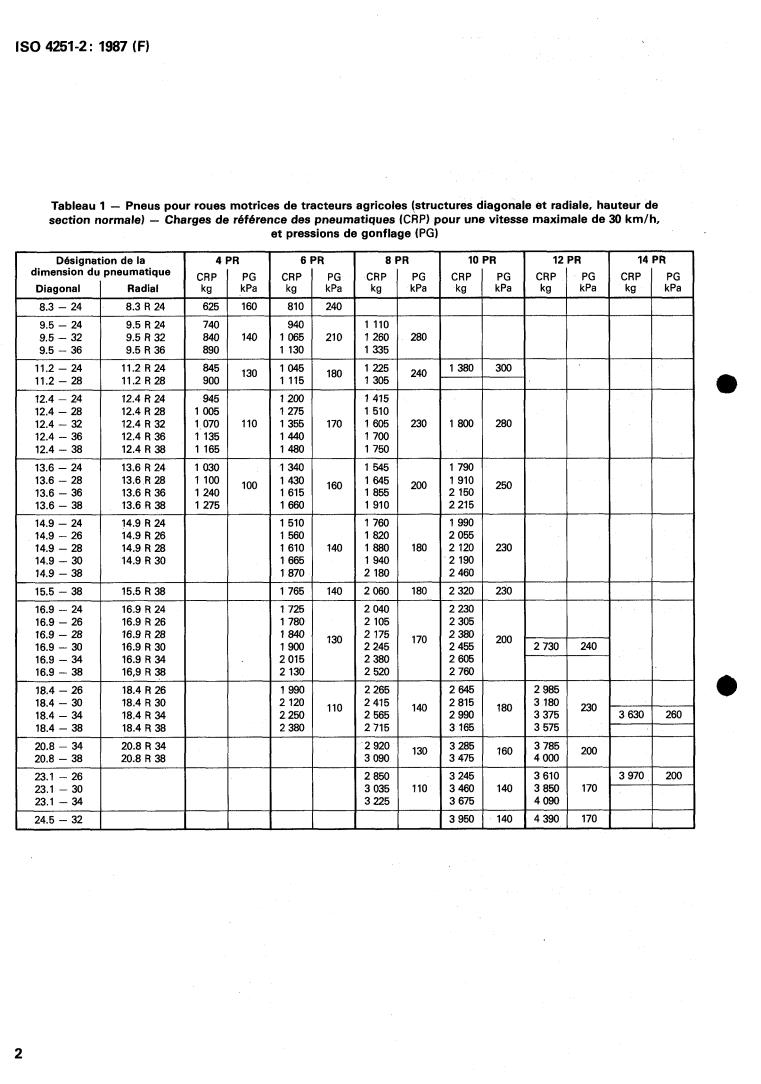 ISO 4251-2:1987 is a standard published by the International Organization for Standardization (ISO). Its full title is "Tyres and rims (existing series) for agricultural tractors and machines — Part 2: Tyre load ratings". This standard covers: Tyres and rims (existing series) for agricultural tractors and machines — Part 2: Tyre load ratings