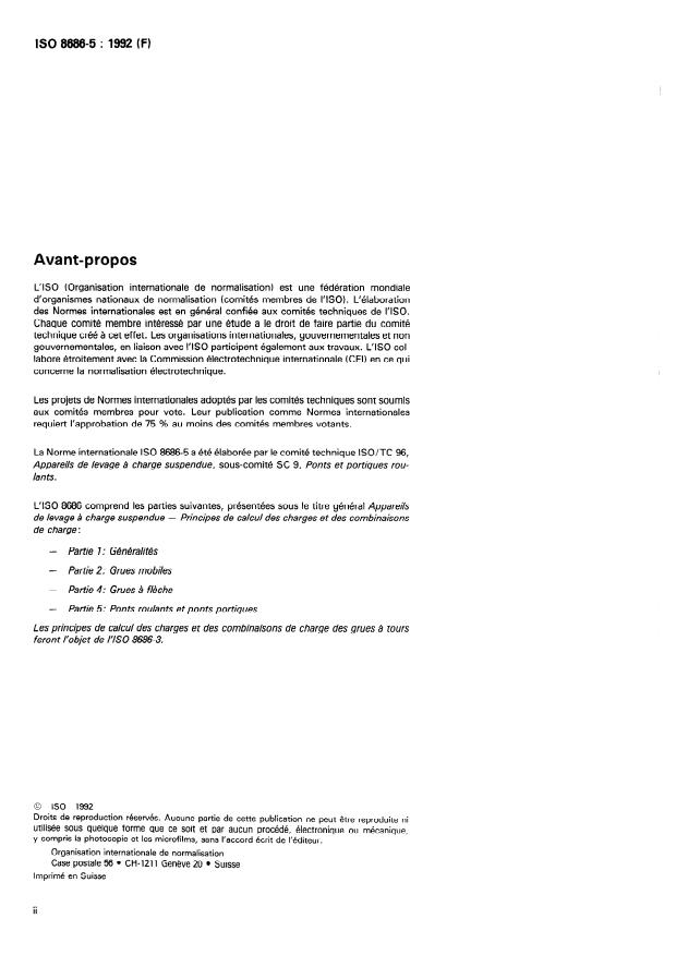 portiques définis dans I’ISO 4306-1, et donne les valeurs spécifi- I SO 8686- 1 : 1989, Appareils de levage à charge suspendue -