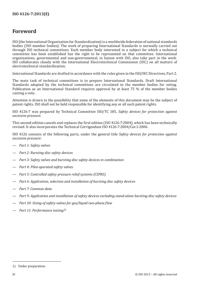 ISO 4126-7:2013 - Safety devices for protection against excessive pressure — Part 7: Common data Released:7/12/2013