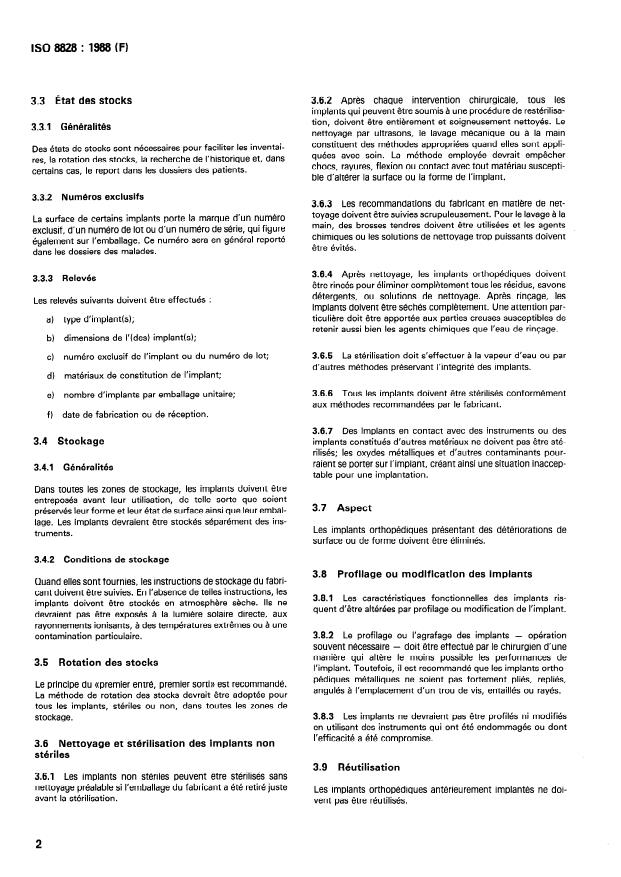 ISO 8828:1988 - Implants chirurgicaux -- Principes directeurs pour l'entretien et la manipulation des implants orthopédiques