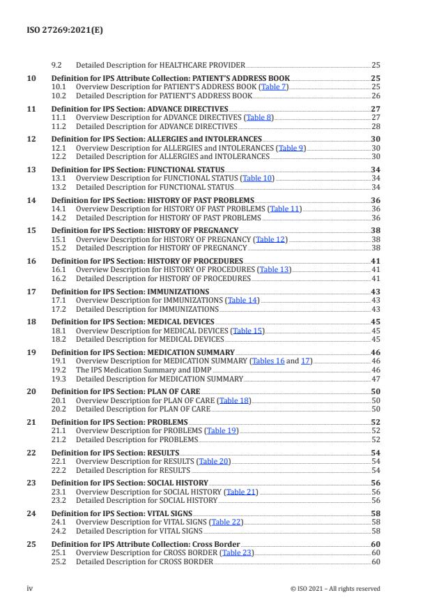 This document defines the core data set for a patient summary document that supports continuity of care for a person and coordination of their healthcare. It is specifically aimed at supporting the use case’ scenario for ‘unplanned, cross border care’ and is intended to be an international patient summary (IPS). Whilst the data set is minimal and non-exhaustive, it provides a robust, well-defined core set of data items. The tight focus on this use case also enables the IPS to be used in planned care. This means that both unplanned and planned care can be supported by this data set within local and national contexts, thereby increasing its utility and value. It uses the European Guideline from the eHN as the initial source for the patient summary requirements, then takes into consideration other international patient summary projects to provide an interoperable data set specification that has global application. This document provides an abstract definition of a Patient Summary from which derived models are implementable. Due to its nature therefore, readers should be aware that the compliance with this document does not imply automatic technical interoperability; this result, enabled by this document, can be reached with the conformity to standards indicated in the associated technical specification and implementation guides. This document does not cover the workflow processes of data entry, data collection, data summarization, subsequent data presentation, assimilation, or aggregation. Furthermore, this document does not cover the summarization act itself, i.e. the intelligence/skill/competence that results in the data summarization workflow. It is not an implementation guide that is concerned with the various technical layers beneath the application layer. Implementation guidance for specifically jurisdictional concerns, e.g. Directives, terminologies, formats, etc., an example is specified in the associated Technical Specification[3]. In particular, representation by various coding schemes, additional structures and terminologies are not part of this document. Terminology and its binding are addressed in Reference [3]. The Identification of Medicinal Products standards (abbreviated to IDMP) are the recommended target for the Medication Summary related to this document but, prior to IDMP’s full implementation in practice, this IPS standard cannot insist in its use at this point in time and recognizes that interim schemes might be necessary until IDMP becomes established as a norm.