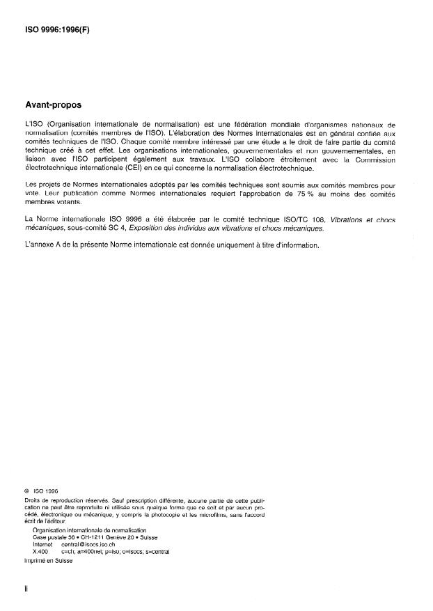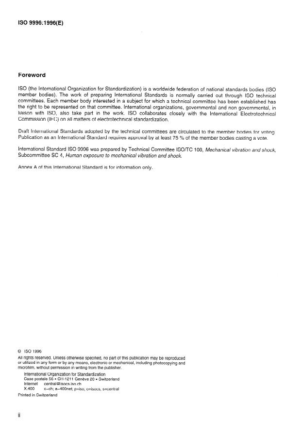 International Standard IS0 9996 was prepared by Technical Committee lSO/TC 108, Mechanical vibration and shock,