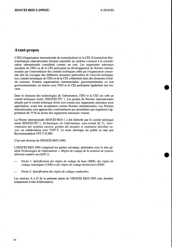 ISO/IEC 8825-1:1995 - Technologies de l'information -- Regles de codage de la notation de syntaxe abstraite numéro un (ASN.1): Spécification des regles de codage de base (BER), des regles de codage canoniques (CER) et des regles de codage distinctives (DER)