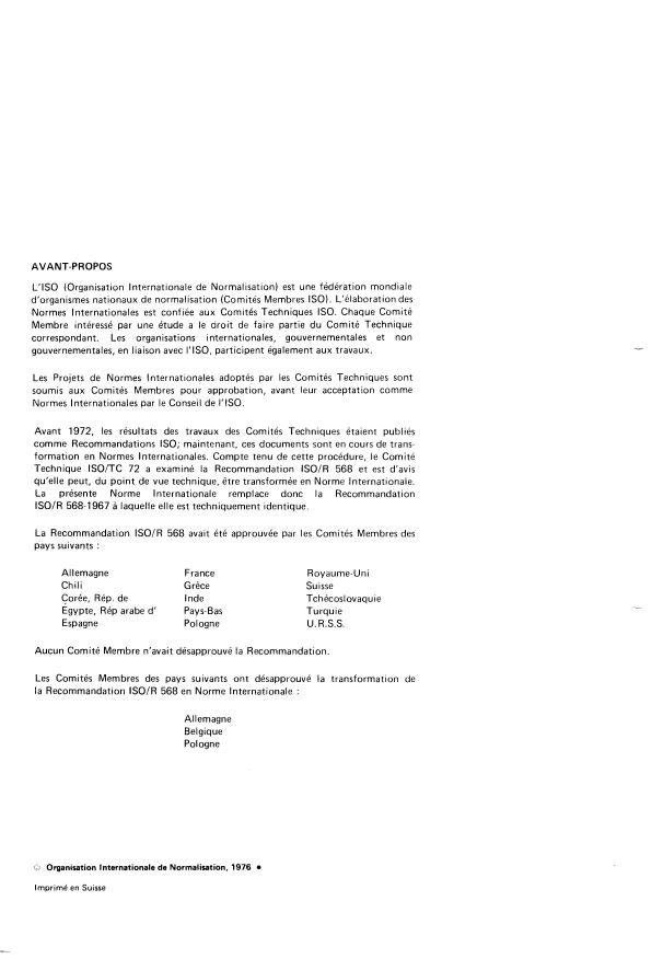 ISO/TC 72 has reviewed IS0 Recommendation R 568 and found it technically