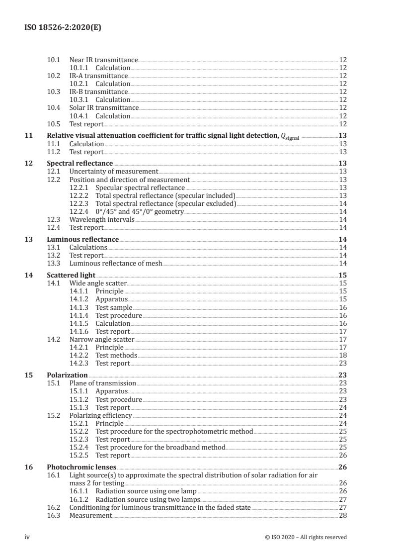 Keywords: ISO 18526-2:2020, eye and face protection, optical properties, luminous transmittance, UV transmittance, blue-light, IR transmittance, scattered light, polarization, photochromic lenses, test methods.