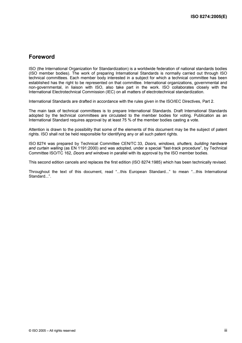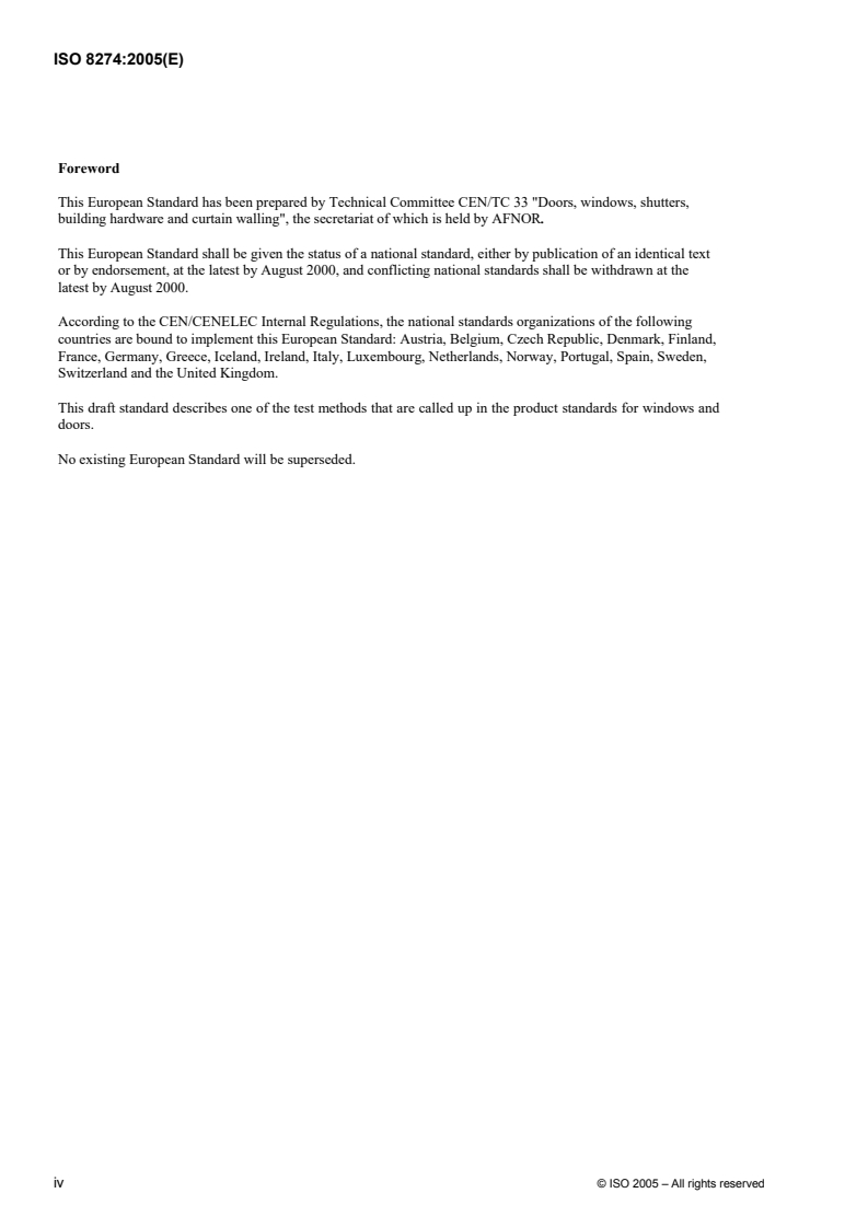ISO 8274 was prepared by Technical Committee CEN/TC 33, Doors, windows, shutters, building hardware