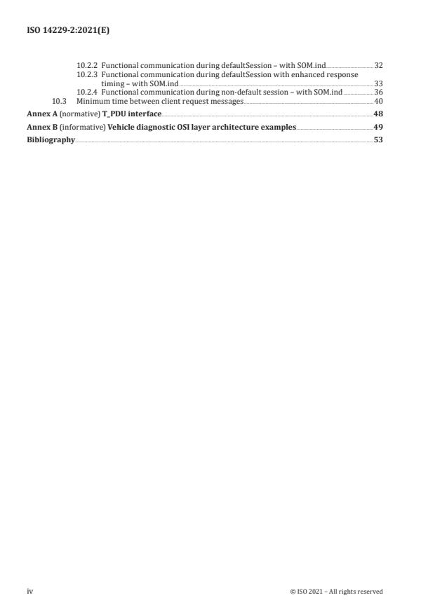 - Conformance and architecture: Includes normative T_PDU interface (Annex A) and informative vehicle diagnostic OSI architecture examples (Annex B).