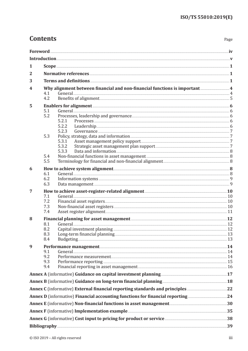 Keywords: ISO/TS 55010:2019, asset management alignment, financial and non‑financial functions, asset registers, capital investment planning, data management, performance reporting, ISO 55001.