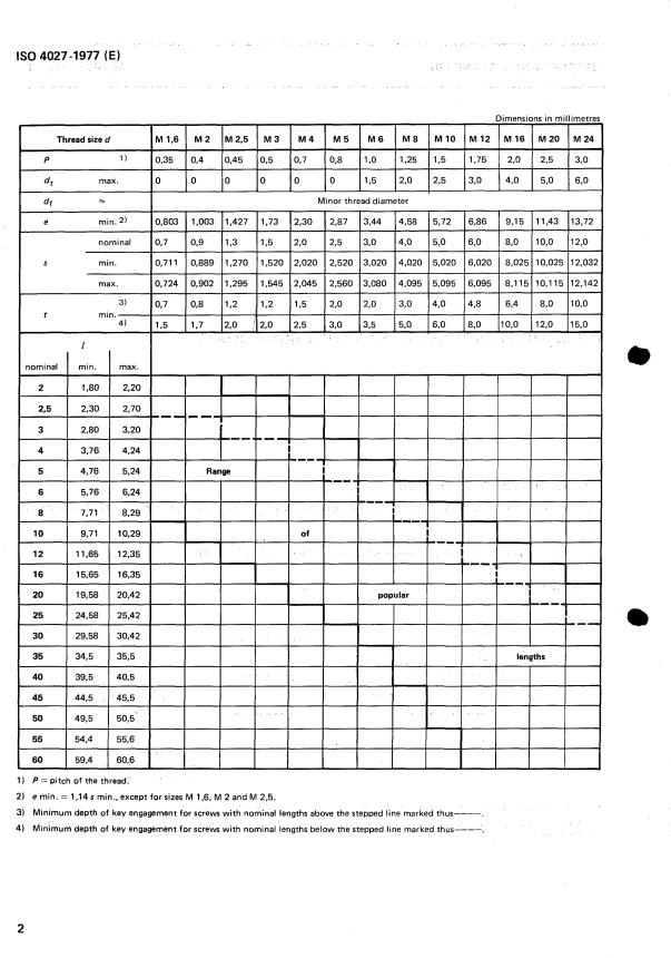 ISO 4027:1977 is a standard published by the International Organization for Standardization (ISO). Its full title is "Hexagon socket set screws with cone point". This standard covers: Hexagon socket set screws with cone point
