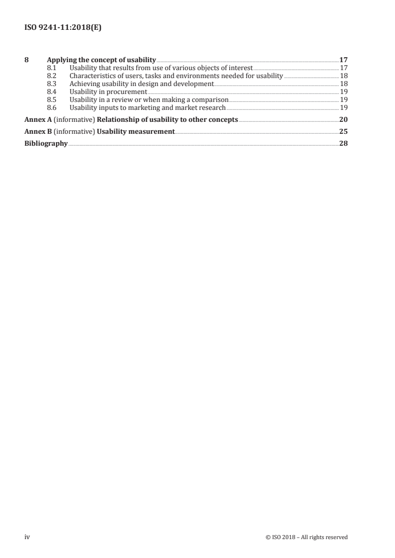 - Informative annexes: relationship of usability to other disciplines and examples of usability measures (measurement approaches are illustrative; the standard does not mandate specific methods or processes).