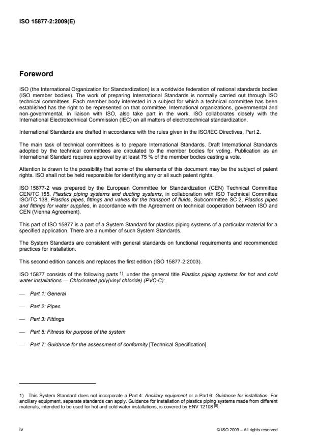 Keywords: ISO 15877-2:2009, PVC‑C pipes, chlorinated poly(vinyl chloride), hot and cold water installations, hydrostatic strength, ISO 1167, ISO 9080.