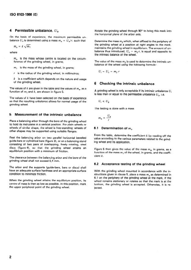 3.2 intrinsic unbalance of a grinding wheel, Ui: The pro-