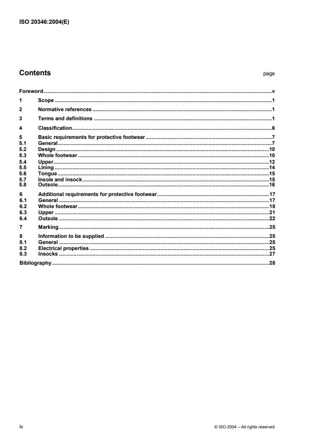 ISO 20346:2004 specifies basic and additional (optional) requirements for protective footwear.