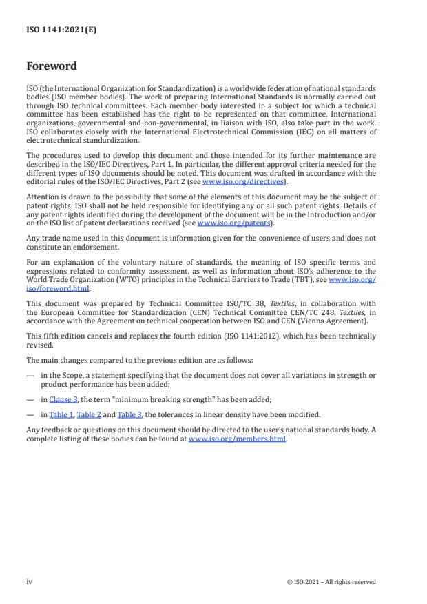Cette cinquième édition annule et remplace la quatrième édition (ISO 1141:2012), qui a fait l’objet d’une