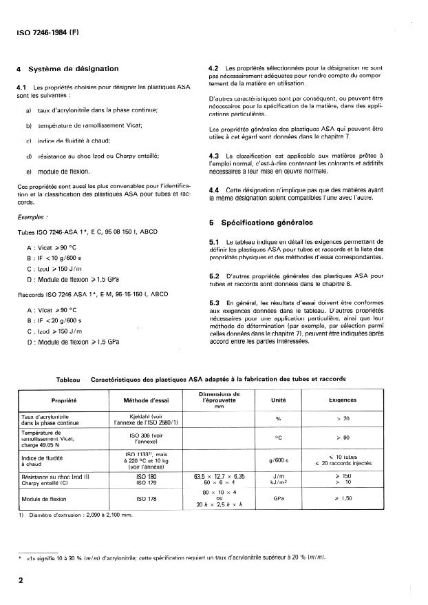 Tubes et raccords en acrylonitrilelstyhe/ester acrylique (ASA) - Spkifications g6n&ales de la ma tike pour le moulage et