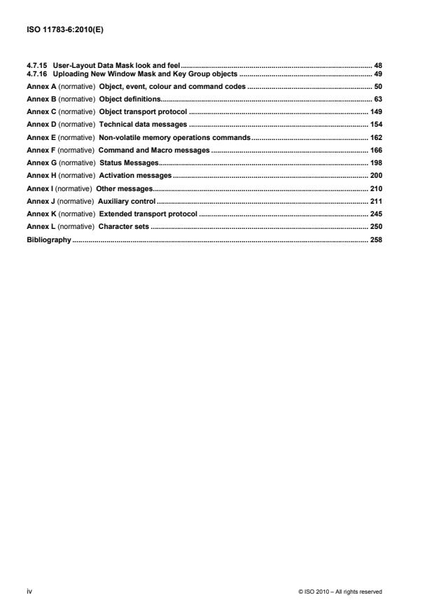 L'ISO 11783 dans son ensemble spécifie un réseau de données en série pour la commande et les communications de tracteurs forestiers ou agricoles et les équipements portés, semi-portés, traînés ou automoteurs. Elle vise à normaliser la méthode et le format du transfert de données entre capteurs, actionneurs, dispositifs de commande, unités de stockage et d'affichage de données, que ces éléments soient montés sur le tracteur ou qu'ils fassent partie du tracteur ou de tout autre outil. L'ISO 11783-6:2010 décrit un terminal virtuel (VT) universel pouvant être utilisé à la fois sur les tracteurs et les outils. Elle est applicable à la fois aux VT et ensembles de travail, version 3 et version 4.