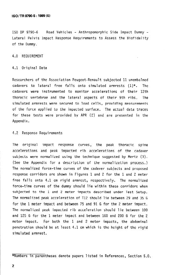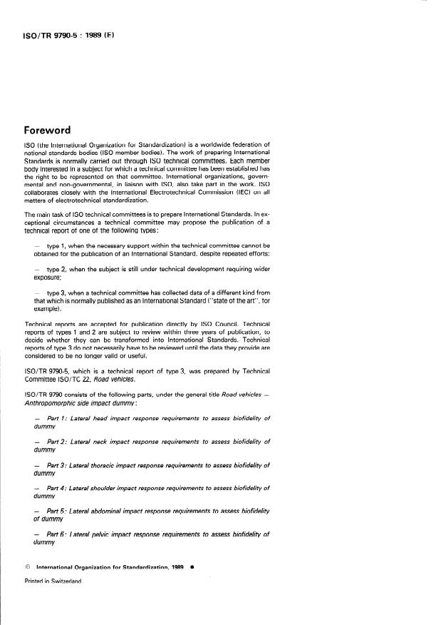 ISO/TR 9790-5:1989 - Road vehicles -- Anthropomorphic side impact dummy