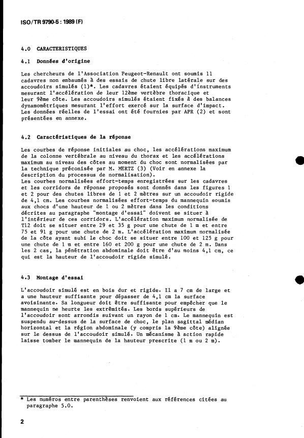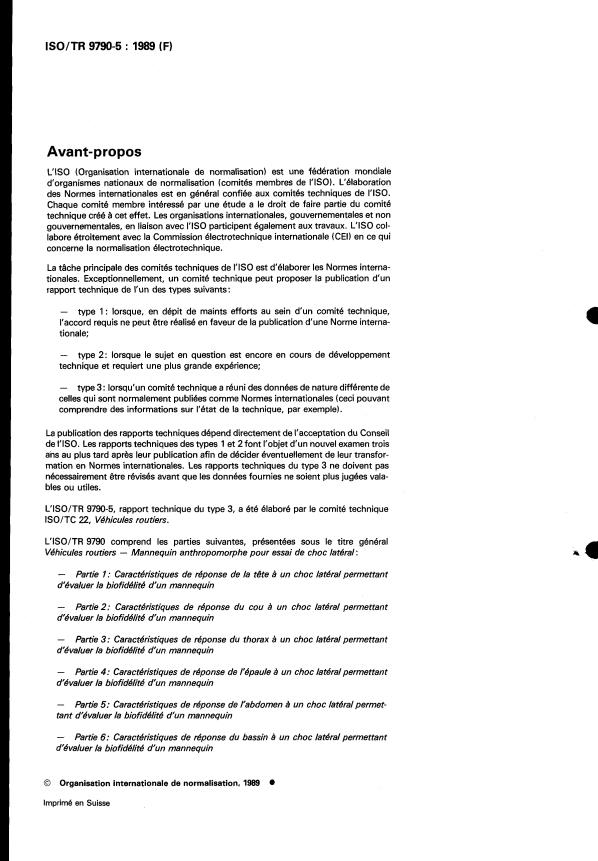ISO/TR 9790-5:1989 - Véhicules routiers -- Mannequin anthropomorphe pour essai de choc latéral