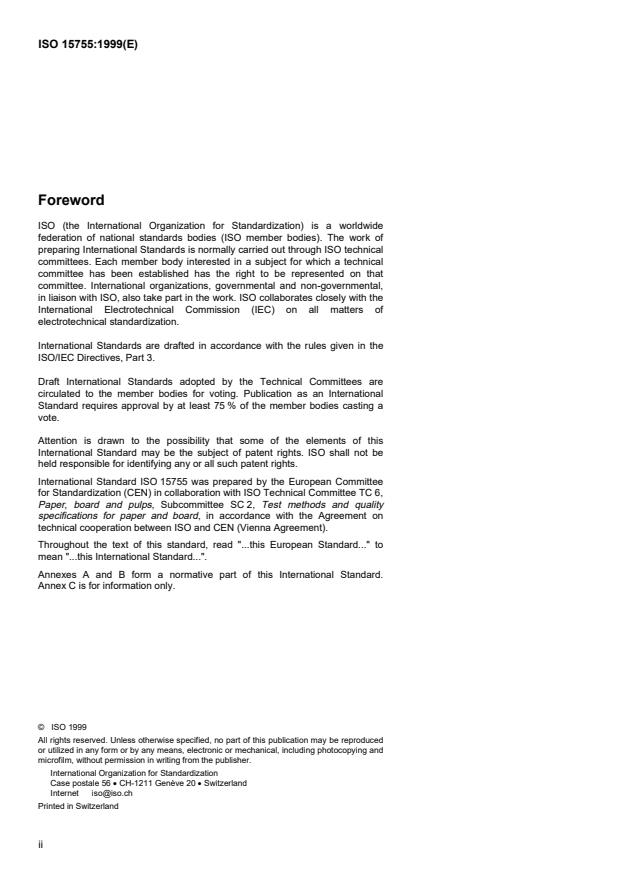 Le texte du EN ISO 15755:1999 a été élaboré par le Comité Technique CEN/TC 172 "Pâtes, papier et carton" dont le