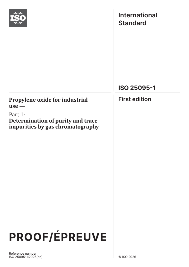 ISO/PRF 25095-1 - Propylene oxide for industrial use — Part 1: Determination of purity and trace impurities by gas chromatography Released:15. 01. 2026