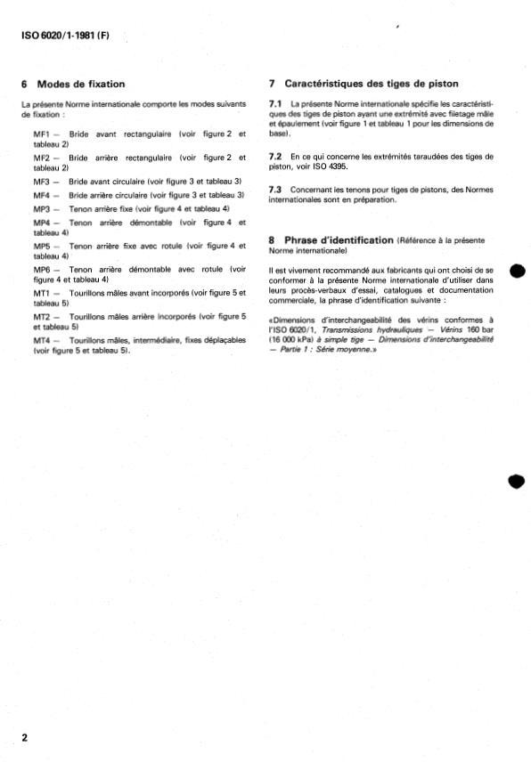 6 Modes de fixation 7 Caractéristiques des tiges de piston