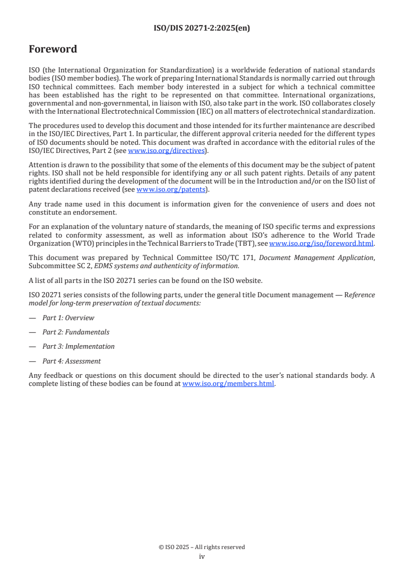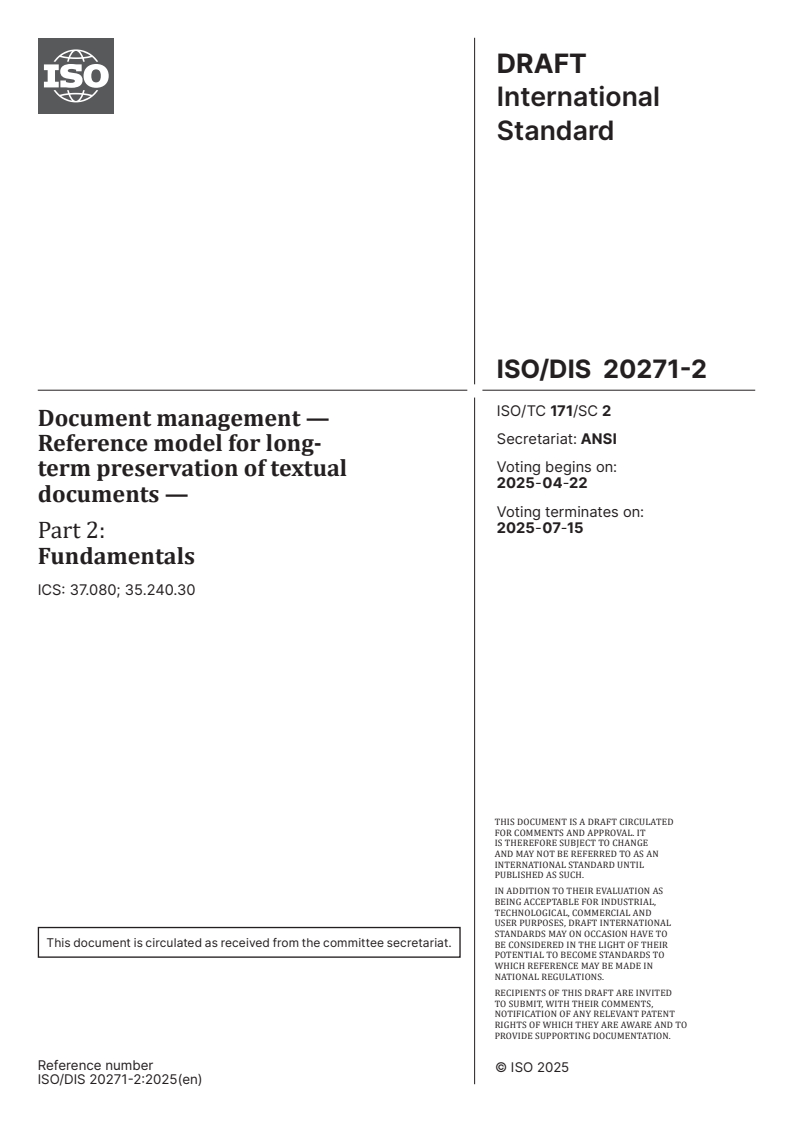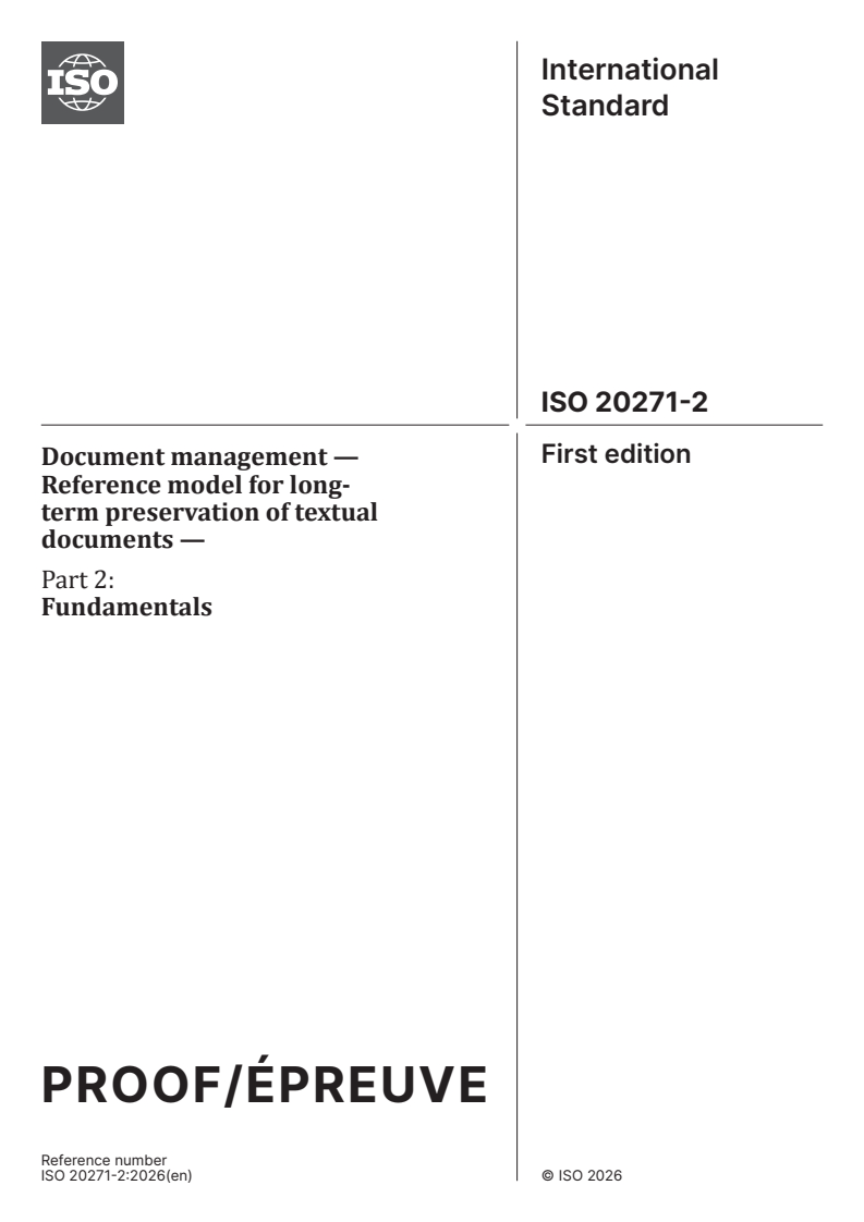 ISO/PRF 20271-2 - Document management — Reference model for long-term preservation of textual documents — Part 2: Fundamentals/25/2025