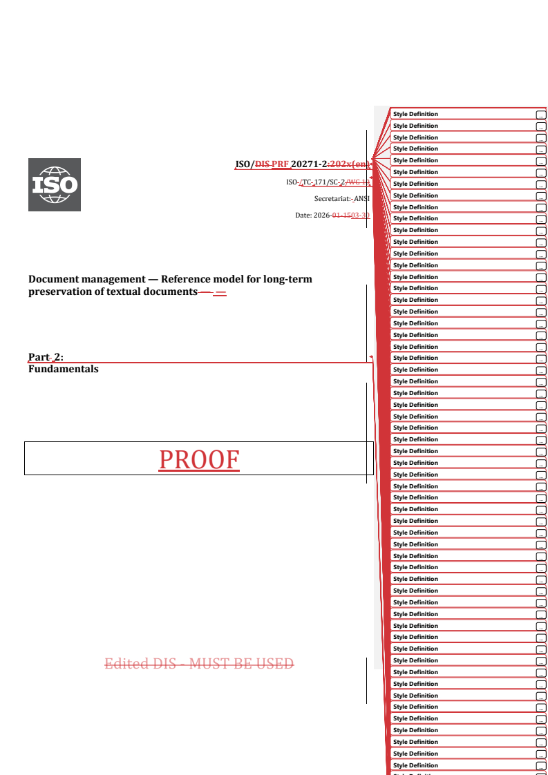 REDLINE ISO/PRF 20271-2 - Document management — Reference model for long-term preservation of textual documents — Part 2: Fundamentals