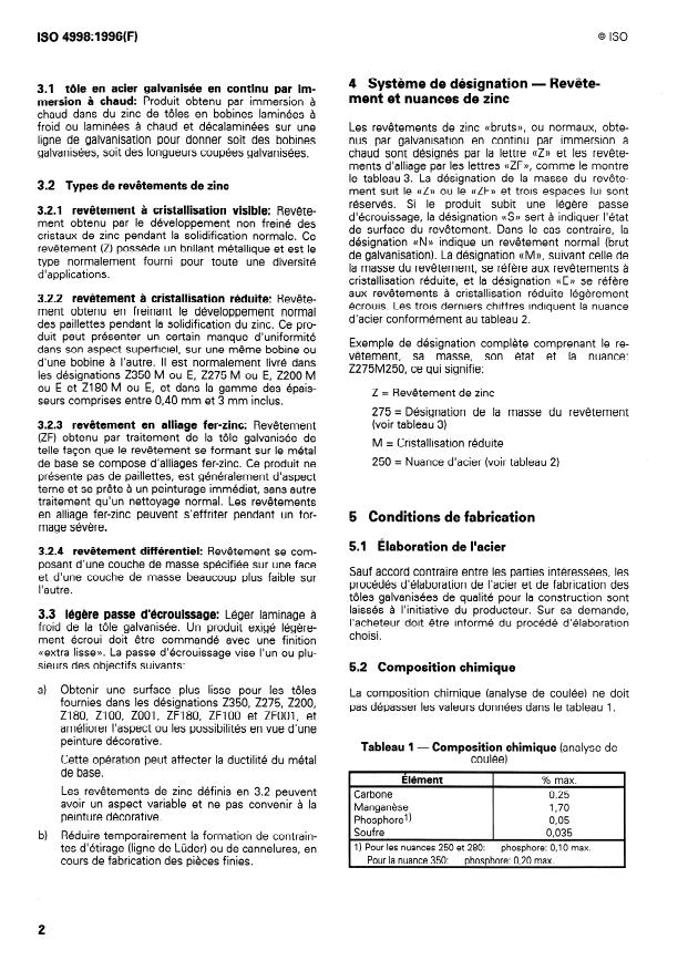 ISO 4998:1996 - Tôles en acier au carbone galvanisées en continu par immersion a chaud, de qualité destinée a la construction