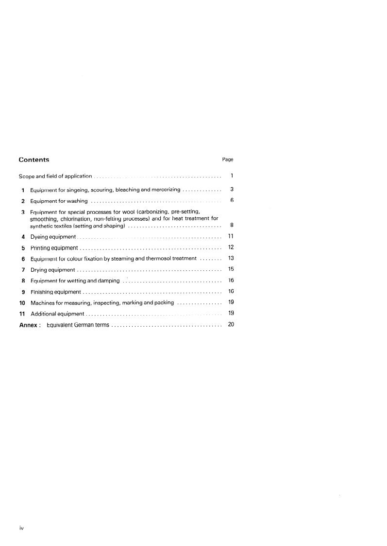 Gives a classification and a nomenclature for machines and apparatus used in the bleaching, dyeing, printing and finishing industries, classified, as far as possible, by the operations for which they are intended. In the field of dyeing and finishing equipment a dinstinction is drawn between machines and apparatus. - Replaces ISO Recommendation R 1506-1970.