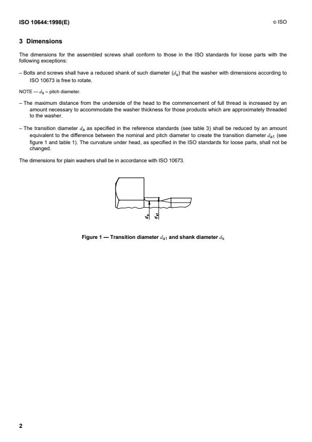 The dimensions for the assembled screws shall conform to those in the ISO standards for loose parts with the