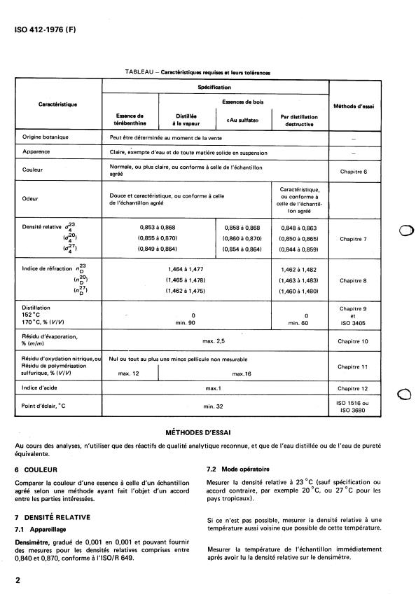 ISO 412:1976 - Essence de térébenthine et essences de bois pour peintures et vernis