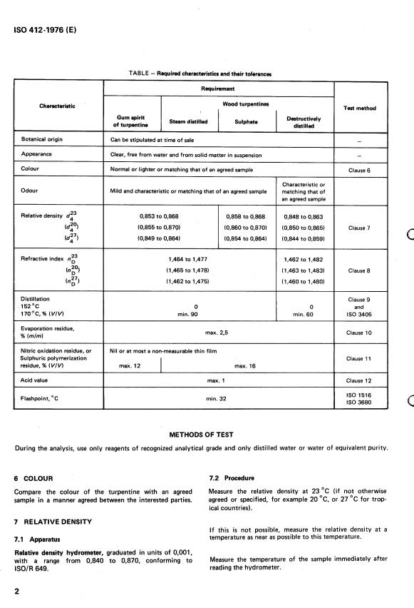 ISO 412:1976 is a standard published by the International Organization for Standardization (ISO). Its full title is "Gum spirit of turpentine and wood turpentines for paints and varnishes". This standard covers: Gum spirit of turpentine and wood turpentines for paints and varnishes