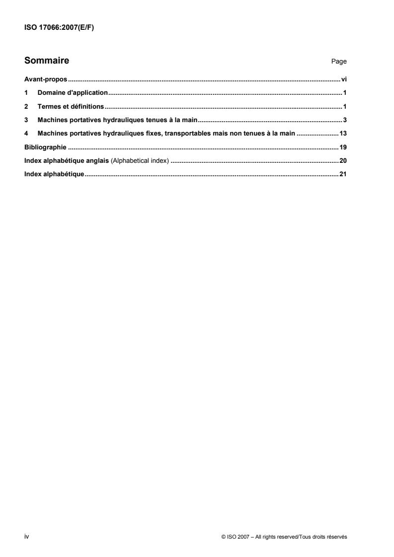 L'ISO 17066:2007 établit un vocabulaire pour les différents types de machines portatives hydrauliques fixes ou transportables ainsi que leurs accessoires. Les termes sont donnés par catégorie: termes généraux, outils pour l'enlèvement et la mise en forme des matériaux et des outils d'assemblage.