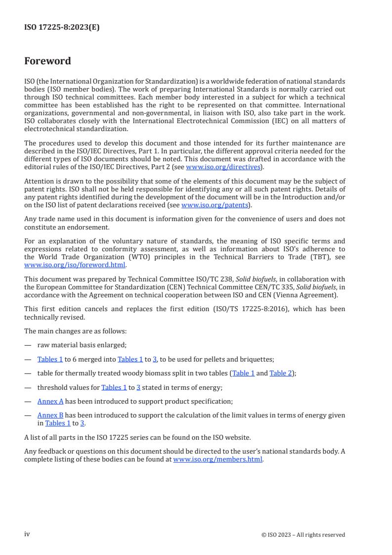 Keywords: ISO 17225-8:2023, solid biofuels, thermally treated biomass, pellets, briquettes, fuel specifications, densified biomass, commercial and industrial use.