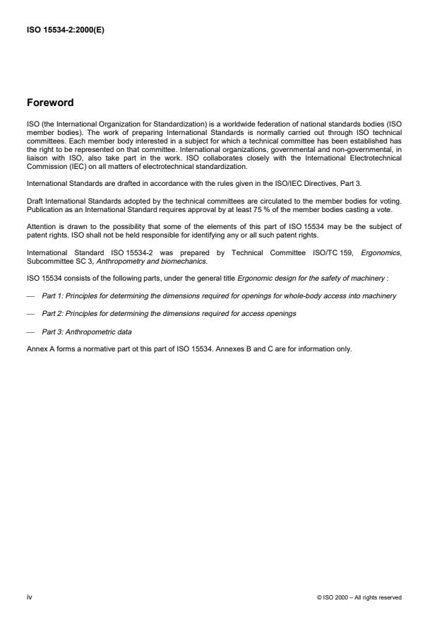 Keywords: ISO 15534-2:2000, ergonomic design, access openings, machinery safety, anthropometric data, access dimensions, reach distances, allowances.