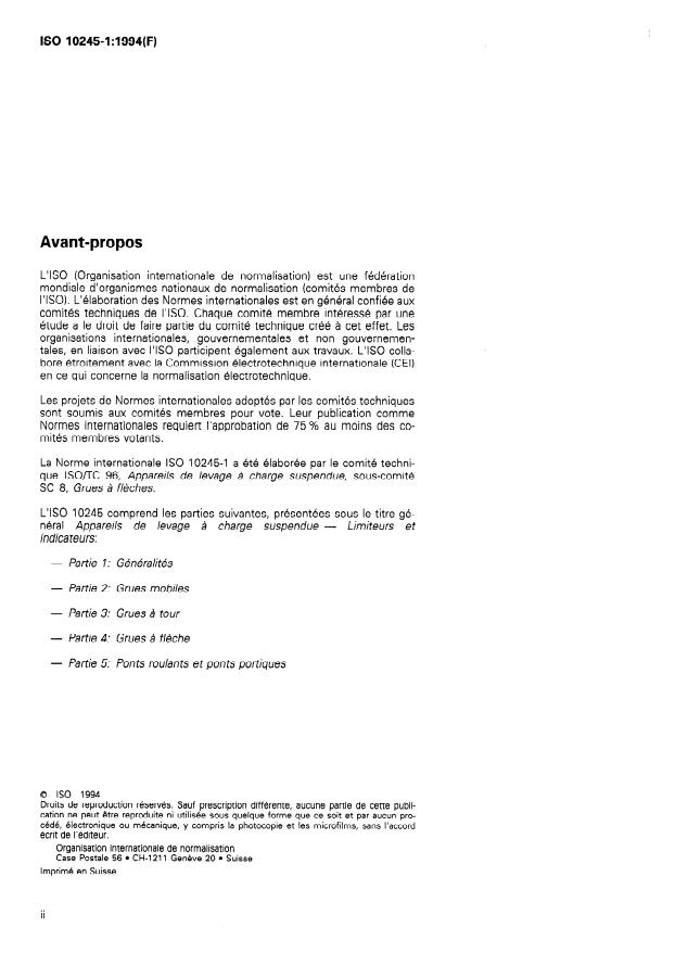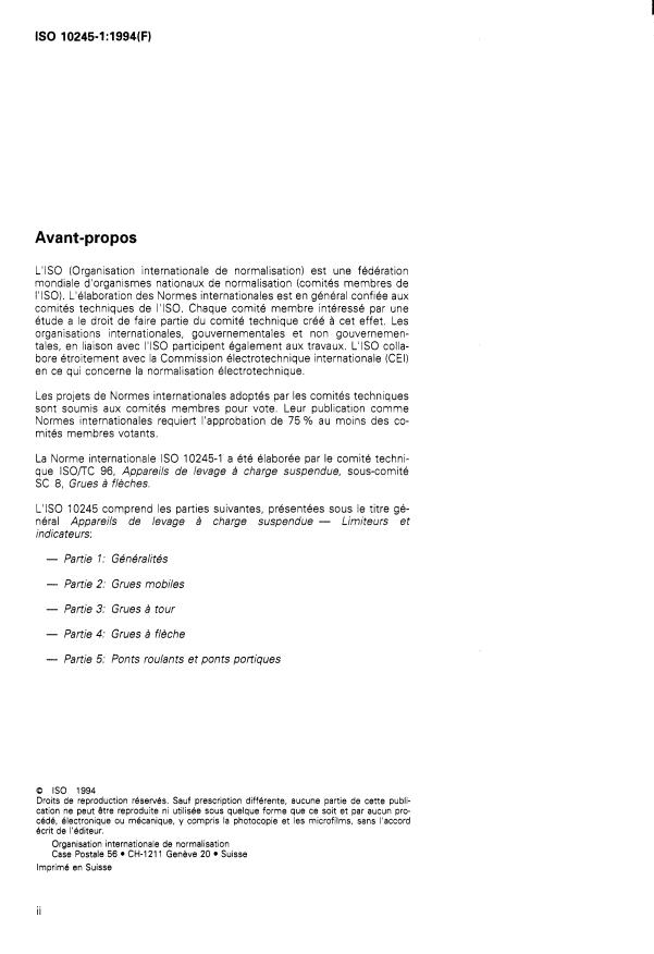 ISO 10245-1:1994 - Appareils de levage a charge suspendue -- Limiteurs et indicateurs