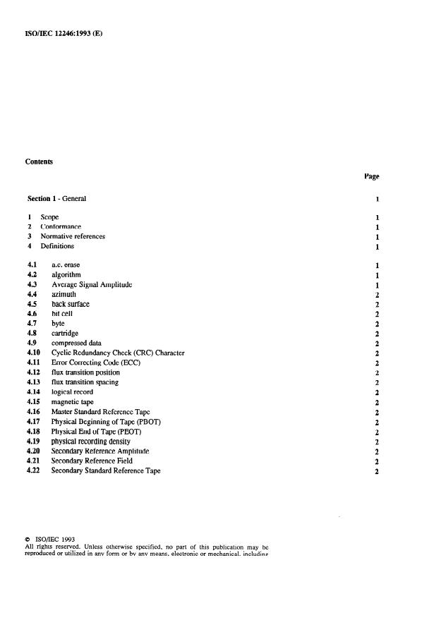 ISO/IEC 12246:1993 specifies an 8 mm wide magnetic tape cartridge dual-azimuth format for information interchange using helical-scan recording. The standard defines the physical and magnetic characteristics of the cartridge and tape, the recorded-signal quality, the on-tape format and the recording method to enable reliable interchangeability of cartridges and data between compliant drives and systems. Based on ISO/IEC 11319, this variant uses Dual Azimuth Recording to increase raw capacity (roughly doubling it compared with single-azimuth formats) and supports variable-length logical records, high-speed search and registered data compression.