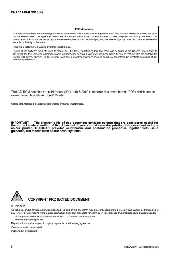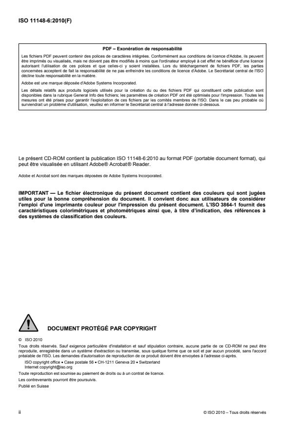 Le présent CD-ROM contient la publication ISO 11148-6:2010 au format PDF (portable document format), qui