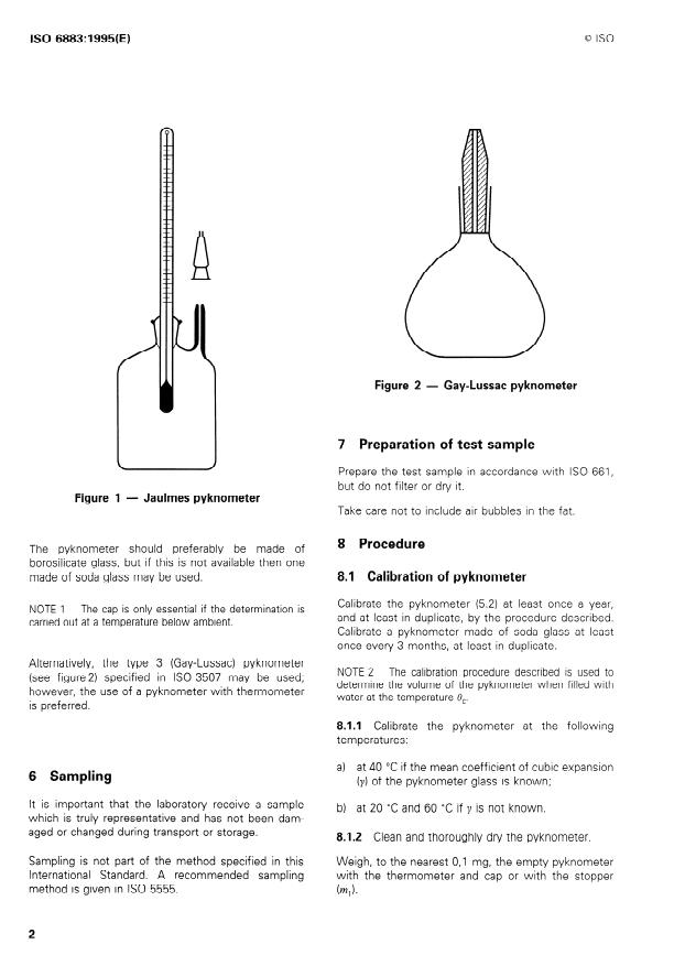 ISO 6883:1995 - Animal and vegetable fats and oils -- Determination of conventional mass per volume ("litre weight in air")