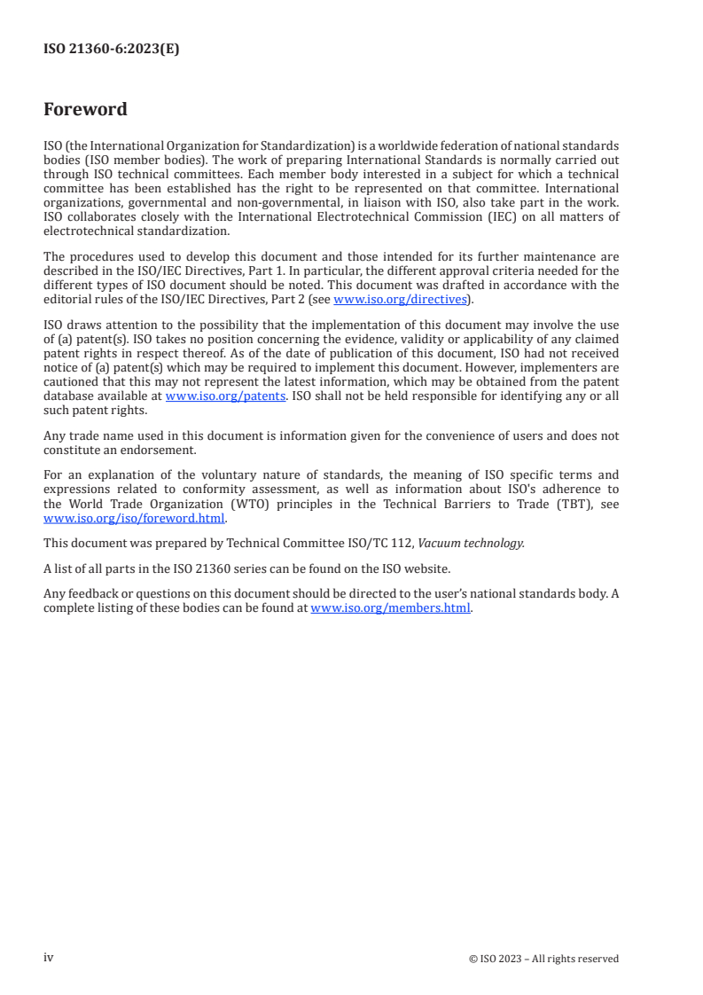 ISO 21360-6:2023 is classified under the following ICS (International Classification for Standards) categories: 23.160 - Vacuum technology. The ICS classification helps identify the subject area and facilitates finding related standards.