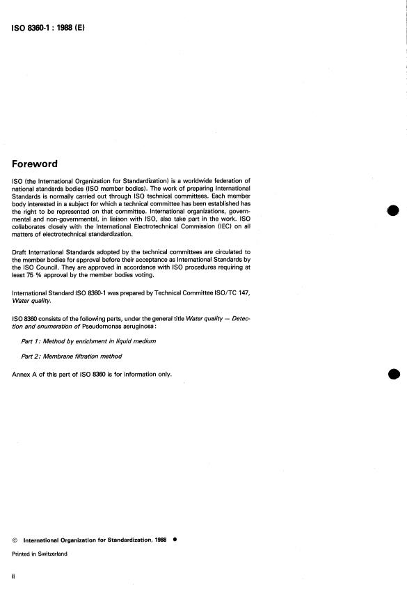 ISO 8360-1:1988 - Water quality — Detection and enumeration of Pseudomonas aeruginosa — Part 1: Method by enrichment in liquid medium Released:12/29/1988