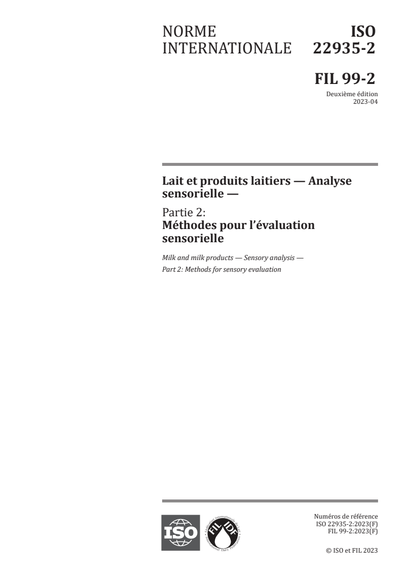 Keywords: ISO 22935-2:2023, sensory evaluation, milk and milk products, IDF 99-2:2023