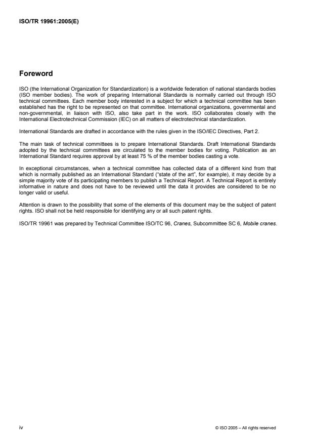 ISO/TR 19961 was prepared by Technical Committee ISO/TC 96, Cranes, Subcommittee SC 6, Mobile cranes.
