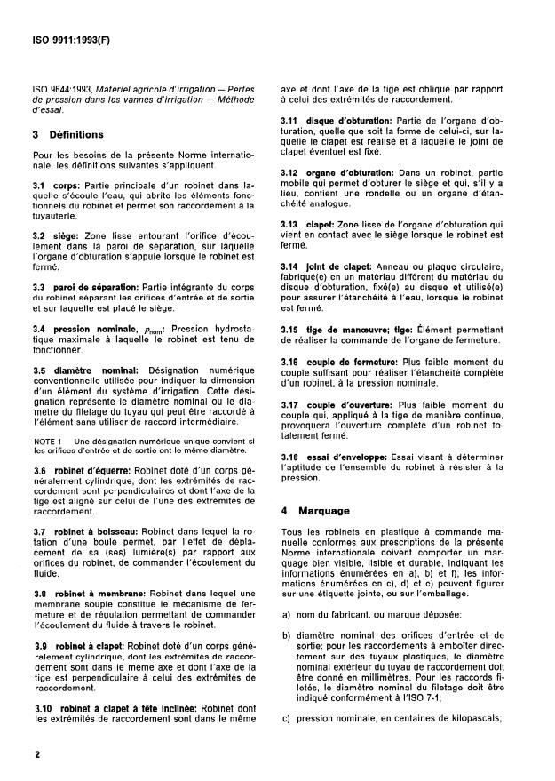 ISO 9911:1993 - Matériel agricole d'irrigation -- Petites vannes en matiere plastique commandées manuellement