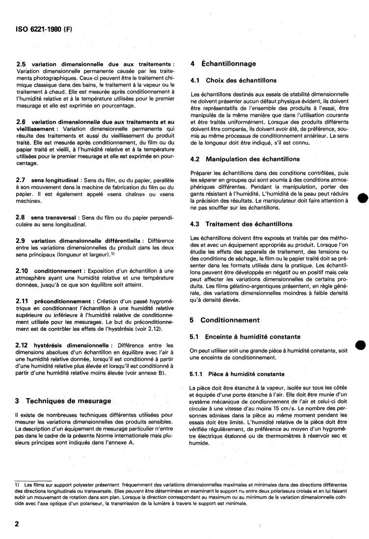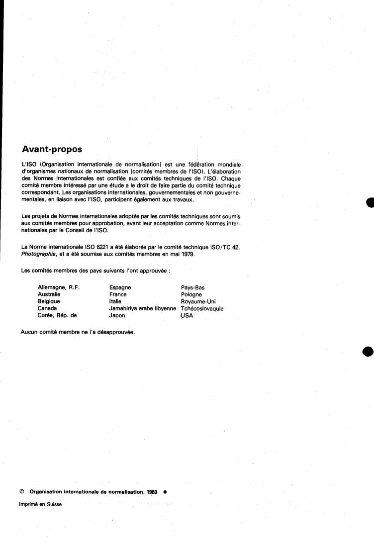 ISO 6221:1980 is a standard published by the International Organization for Standardization (ISO). Its full title is "Photography — Photographic films and papers — Determination of the dimensional change characteristics". This standard covers: Photography — Photographic films and papers — Determination of the dimensional change characteristics