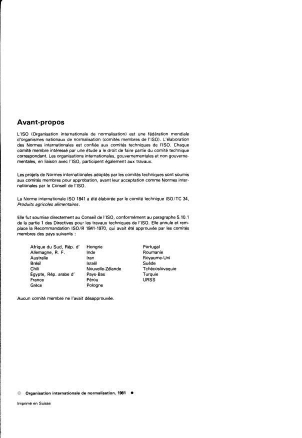 La Norme internationale IS0 1841 a été élaborée par le comité technique ISO/TC 34,