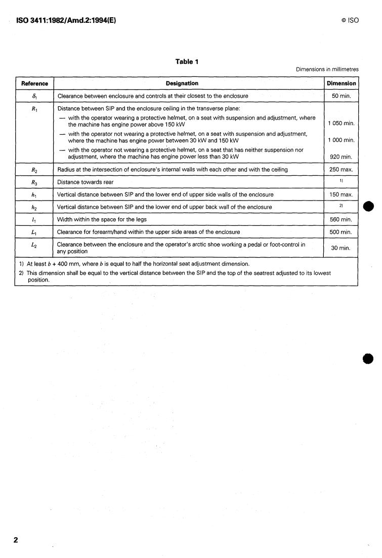 ISO 3411:1982/Amd 2:1994 - Earth-moving machinery — Human physical dimensions of operators and minimum operator space envelope — Amendment 2 Released:10/13/1994