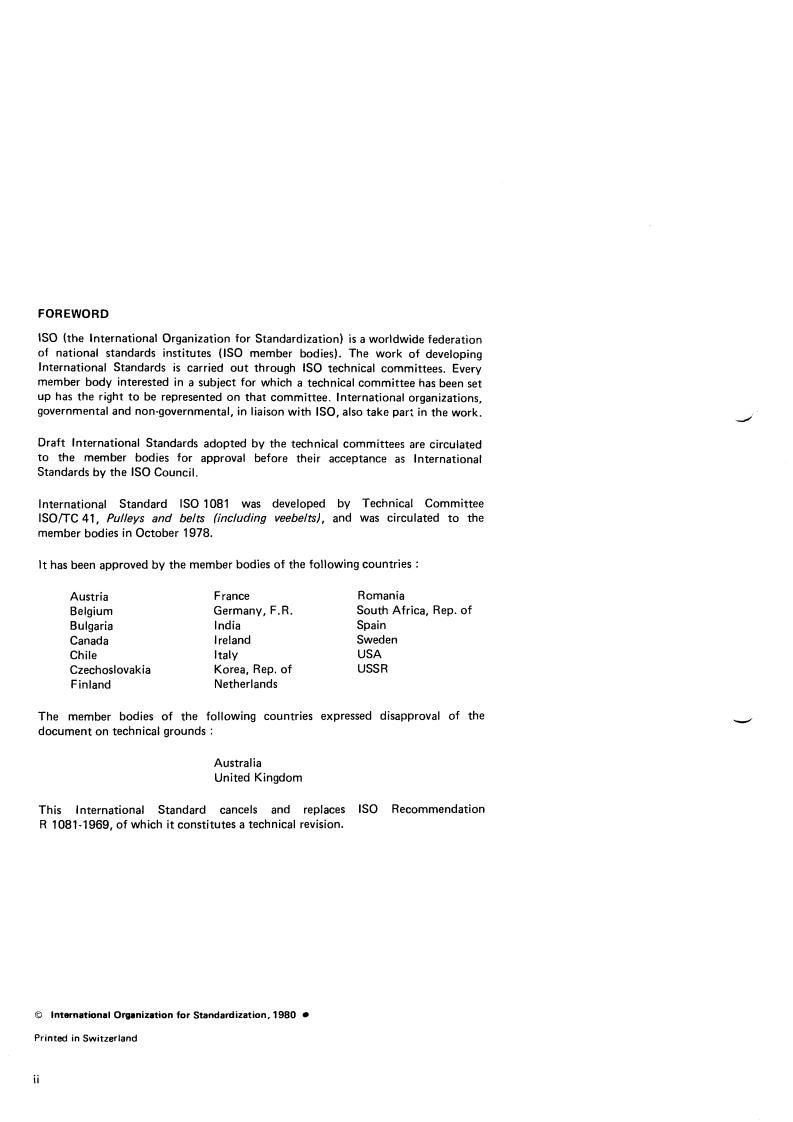 lSO/TC 41, Pulleys and belts (including veebeltsl, and was circulated to the